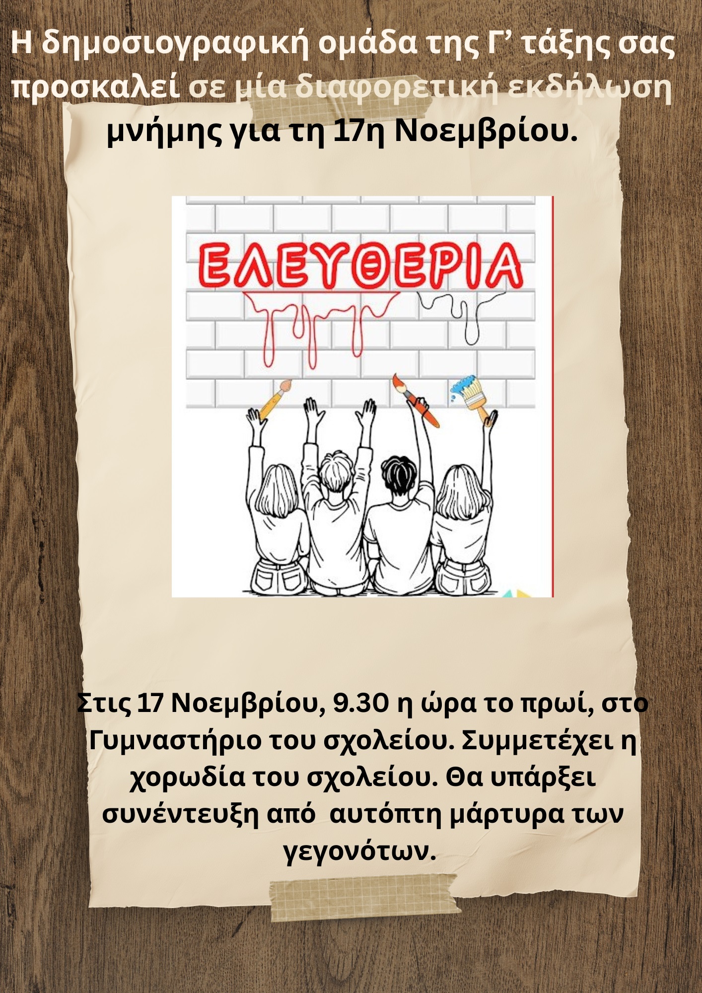 12 Νοεμβρίου 202512 Νοεμβρίου 2025Ανακοινώσεις / Γιορτές - ΕκδηλώσειςΠΡΟΣΚΛΗΣΗ ΓΙΑ ΤΗΝ ΕΚΔΗΛΩΣΗ ΜΝΗΜΗΣ