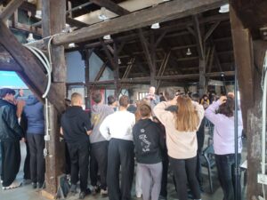 Ανήμερα της Αγίας Βαρβάρας, της προστάτιδας των μεταλλωρύχων, η περιβαλλοντική ομάδα της Γ τάξης συμμετείχε στον εορτασμό του πολύ ιδιαίτερου προσκυνήματος που βρίσκεται μέσα στο Τεχνολογικό Πάρκο. Αρχικά, παρακολούθησαν την επιμνημόσυνη δέηση για τους νεκρούς μεταλλωρύχους. Ακολούθησε παρουσίαση “συναρπαστικών ιστοριών για τους μεταλλωρύχους” από τον καθηγητή του ΕΜΠ και Διευθύνοντα Σύμβουλο του ΤΠΠΛ, κύριο Δημήτρη Καλιαμπάκο, καθώς και διαδραστικό παιχνίδι ειδικά σχεδιασμένο για μαθητ@ς. Η παρουσίαση συνδεόταν με τη σχέση των μεταλλωρύχων με το ποδόσφαιρο. Στο τέλος, πρόσφερθηκαν παραδοσιακά κεράσματα, όπως παλιά (χειροποίητοι λουκουμάδες), για να έρθουν οι μαθητ@ς μας σε επαφή με τις τοπικές παραδόσεις. Ευχαριστούμε πολύ για αυτή την εμπειρία.